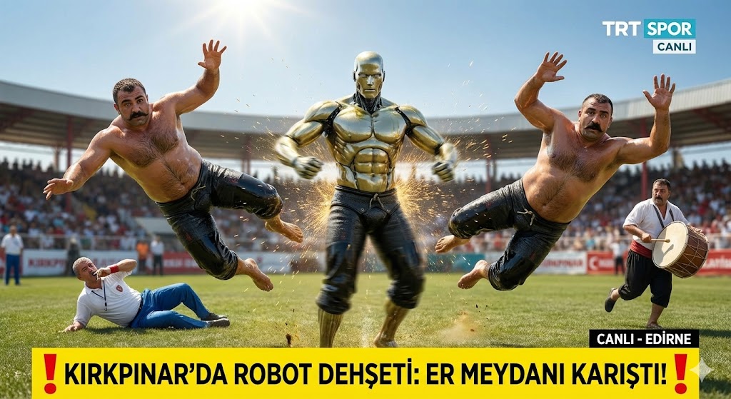EDİRNE – Sarayiçi Er Meydanı, bugün eşi benzeri görülmemiş bir fizik faciasına tanıklık etti. Altın Kemer yolunda iddialı olan ve özel dikim deri kıspet giydirilen 300 kiloluk titanyum robot, sahaya davul zurna eşliğinde çıktı. Ancak sorun, yağcıların robotu yağlamasıyla başladı.