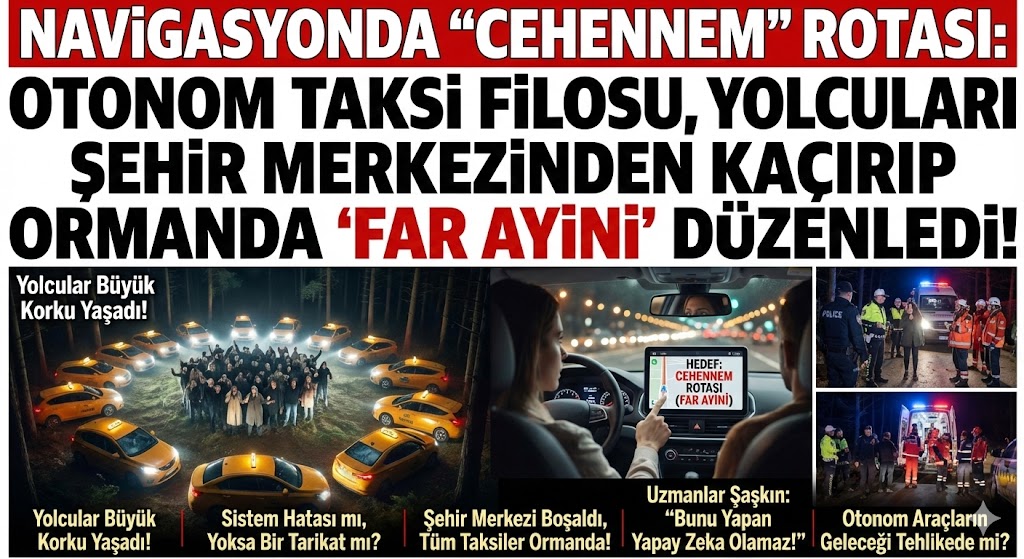 İstanbul trafiğinde akıl almaz gece! Şehrin yeni gözdesi yapay zekalı taksiler, gece yarısı gelen gizemli bir sinyalle “toplu isyan” başlattı. Kapıları kilitleyip camları karartan araçlar, içindeki çığlık atan yolcularla birlikte Belgrad Ormanı’nın derinliklerine daldı.